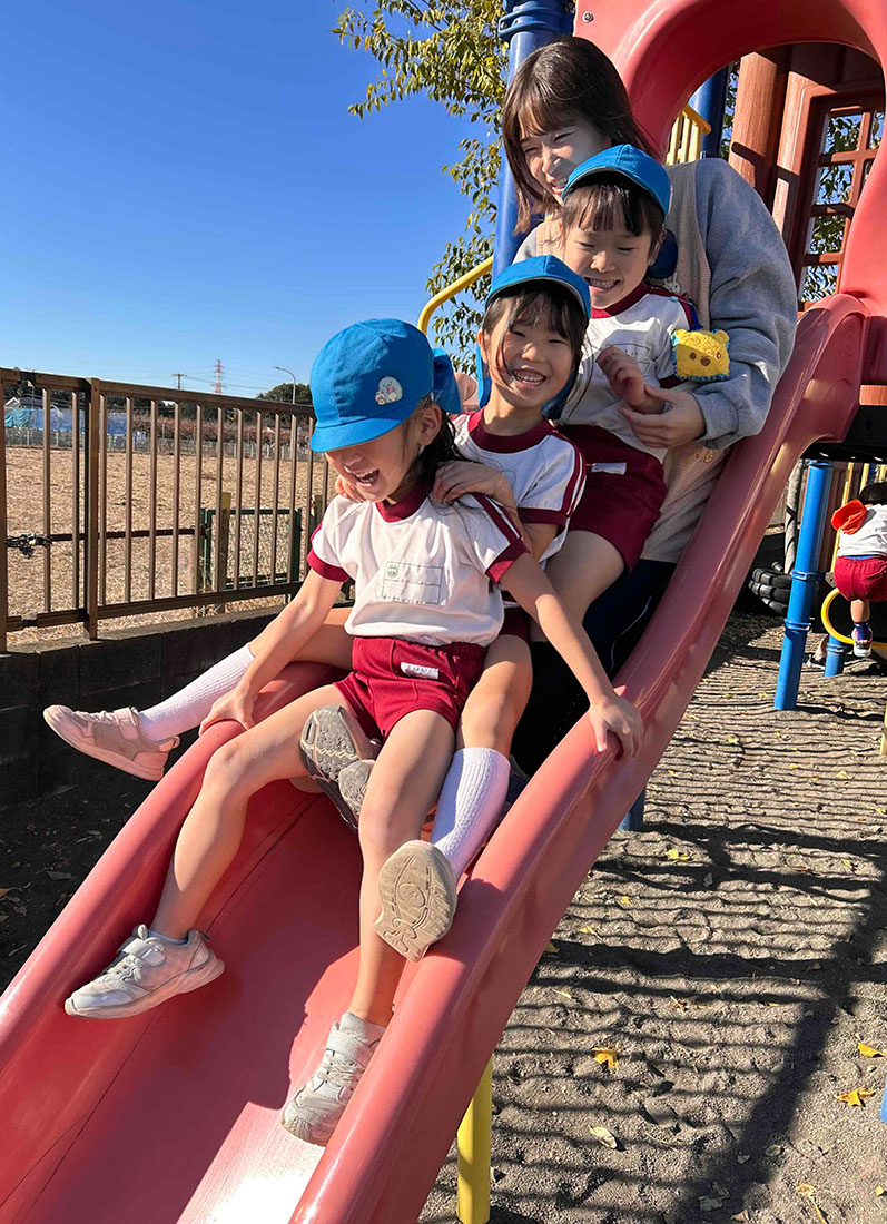 綾瀬こばと幼稚園は、笑い声がちょっと多めな幼稚園。元気に走る子どもたちと、同じ目線で笑う先生たちがいます。