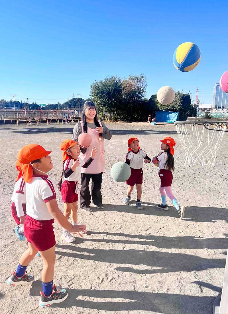 綾瀬こばと幼稚園は、笑い声がちょっと多めな幼稚園。元気に走る子どもたちと、同じ目線で笑う先生たちがいます。